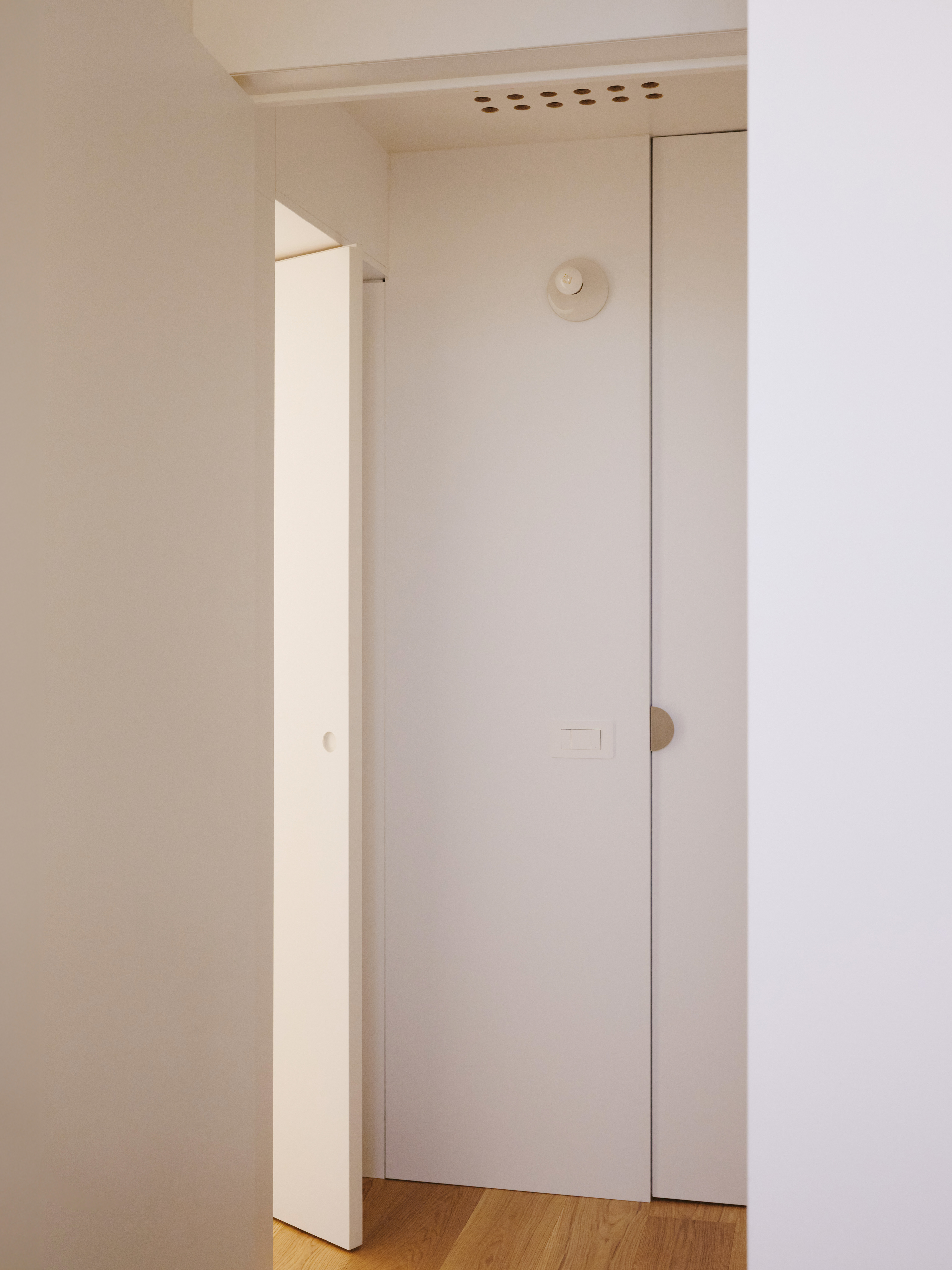 The result is a measured, functional, and elegant interior, where the combination of natural materials and technical surfaces achieves a refined balance—a contemporary home thoughtfully designed for Milan’s urban context.